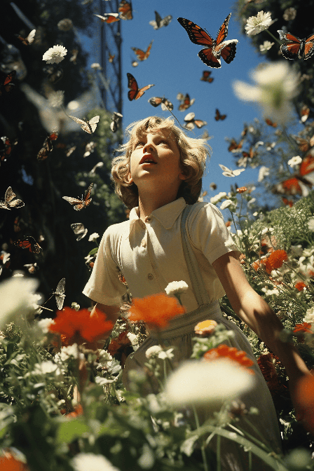 Join a group of children as they chase after robotic butterflies in a park filled with metallic flora The close-up view captures the moment of joy in vibrant, hyperrealistic detail by Cindy Sherman --ar 2:3 --s 250 --style raw --v 6.0