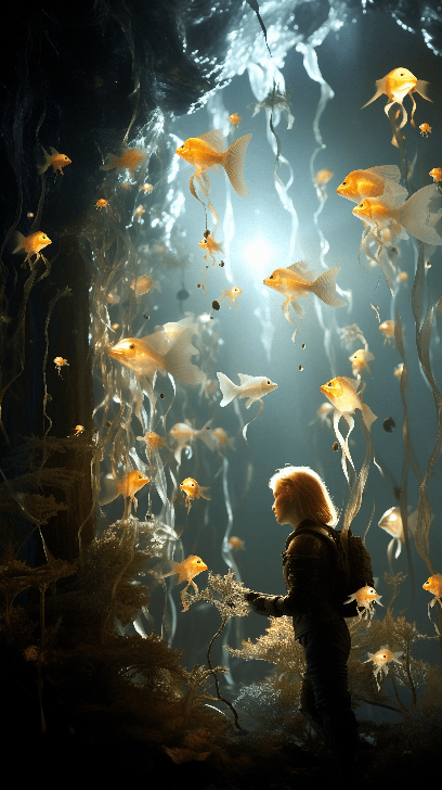 A vast, bioluminescent ocean teeming with alien marine life, captured in the underwater photography style of Zena Holloway. --ar 9:16 --s 250 --style raw --v 6.0