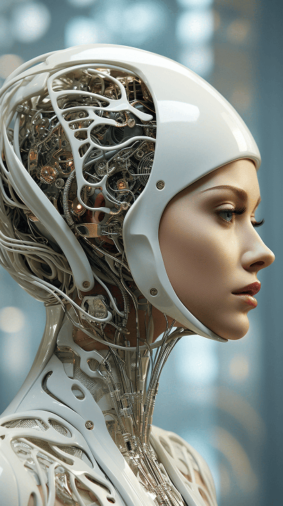 Picture a futuristic, biomechanical humanoid, its form reflecting the elegance of art nouveau design. The 3D rendering captures the organism's high tech, texture-rich design in a 16K, ultra-detailed image. --ar 9:16 --s 250 --style raw --v 6.0