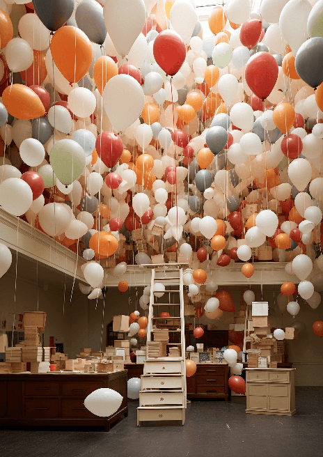Imagine a high-quality 16K indoor scene by Martin Creed, featuring an array of ordinary objects defying gravity. This 3D art installation should be photographed using a low-angle shot to enhance the illusion of floating. --ar 5:7 --s 250 --style raw --v 6.0