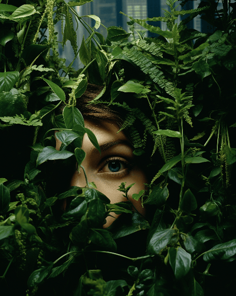 Imagine a city skyline where the buildings have become overgrown with lush, bioengineered foliage The wide view captures the skyscrapers entwined with vibrant greenery in hyper-detailed, cinematic style by Alex Prager --ar 4:5 --s 250 --style raw --v 6.0