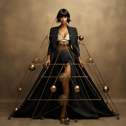 A chic figure elegantly adorned in an outfit reminiscent of the geometry of the Egyptian pyramids. Captured in a golden ratio composition for Cosmopolitan by skilled artist Karl Lagerfeld --ar 1:1 --s 250 --style raw --v 6.0