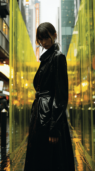 Picture a model, immersed in the vibrant street life of modern Tokyo, sporting a neon-infused Yohji Yamamoto outfit, standing on a crowded pedestrian crossing, wide view, W Magazine, by Alec Soth --ar 9:16 --s 250 --v 6.0