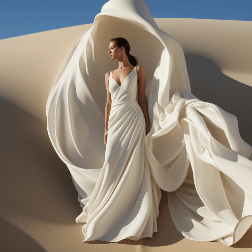 A daring and dynamic duo clad in high fashion interpretations of the Sahara desert's undulating dunes. Shot in low angle view, the backdrop features an endless sea of sand under a star-studded sky. Medium: Vogue, Artist: Bill Durgin --ar 1:1 --s 250 --style raw --v 6.0