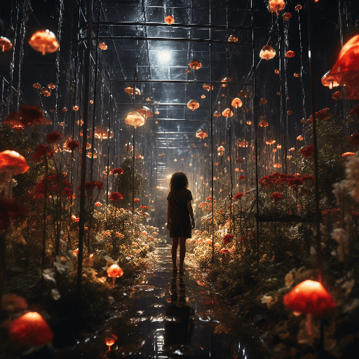 Picture a botanical garden where cybernetic roses bloom, their metallic petals reflecting the neon cityscape The wide view captures this surreal blend of nature and technology in hyper-detailed, cinematic style by Elizabeth Gadd --ar 1:1 --s 250 --style raw --v 6.0