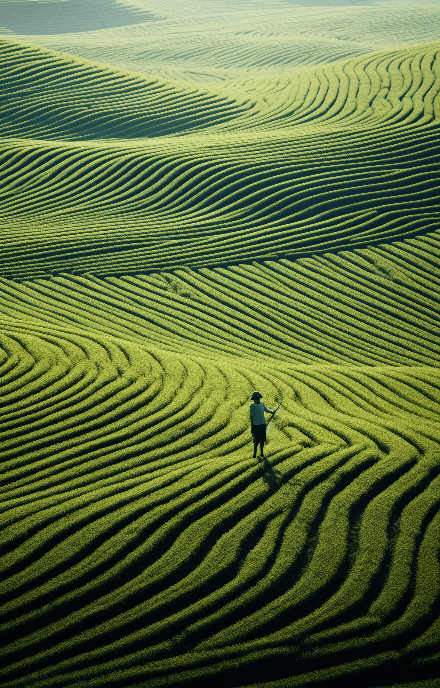 Witness a scene where a futuristic farmer tends to her field of metallic wheat, the stalks glinting under the sun The aerial view captures the everyday life of the future in a hyper-detailed, cinematic style by John Waters --ar 9:14 --s 250 --style raw --v 6.0