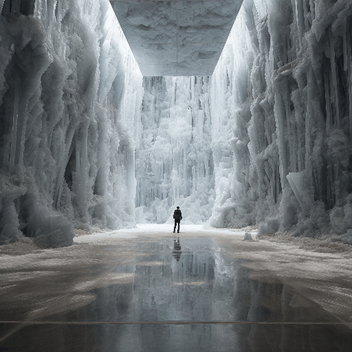 Picture an ultra-detailed 16K 3D art by Daniel Arsham. An indoor gallery space where the walls, floor, and ceiling are entirely made up of shimmering crystal formations. The wide-angle composition conveys the vastness and strangeness of the mineral-infused architecture. --ar 1:1 --s 250 --style raw --v 6.0