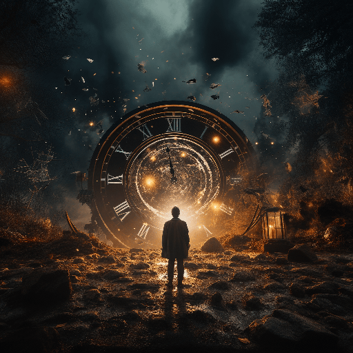 Content: A time traveler stepping out of a portal into an unknown era. Status: The scene is filled with anticipation and mystery. Perspective: This is an aerial view. Composition: The scene is filled with intricate details, showcasing the film style. --ar 1:1 --s 250 --style raw --v 6.0