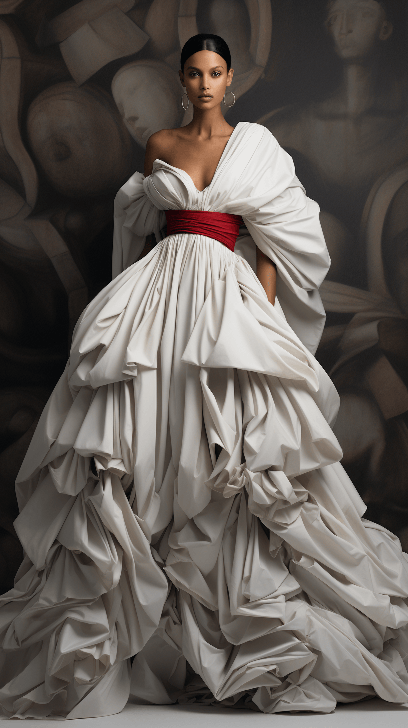 An enigmatic figure, clad in a high-fashion interpretation of the Roman toga, amidst a backdrop mimicking a Latin inscription. Shot for Vogue, in an ultra-wide angle view by iconic artist Carolina Herrera --ar 9:16 --s 250 --style raw --v 6.0