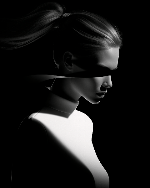 Drawing inspiration from modern minimalist fashion, depict a poised model with a perfect face under a soft spotlight. She is wearing an avant-garde silhouette, and captured in a half body shot. The setting is a clean, monochromatic studio, creating a richly dynamic scene. This is the visual language of Giorgio Armani --ar 4:5 --s 180 --v 6.0