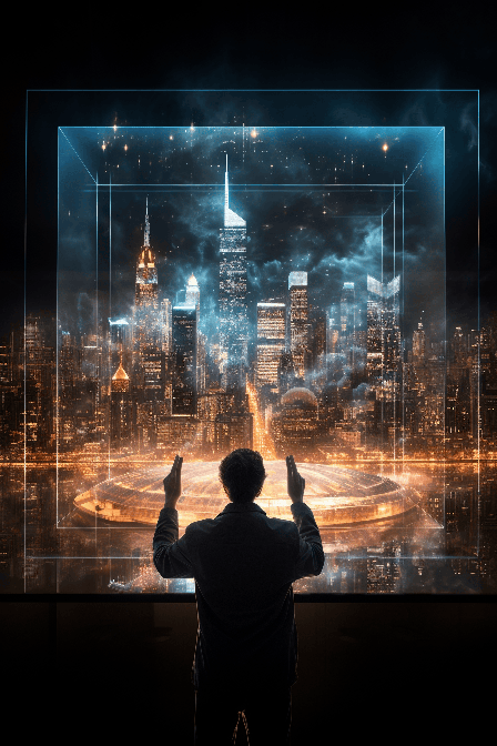 An ultra-modern tablet device suspended in mid-air against a backdrop of a bustling city. The tablet emits a holographic display, illuminating the surrounding darkness. This scene is influenced by the stark contrasts and dynamic compositions found in the works of Alan Schaller --ar 2:3 --s 250 --v 6.0