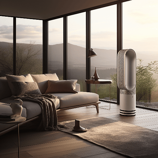 Drawing inspiration from Elle Decor, imagine an advanced air purifier. The purifier combines high tech with a simple design, offering a clean background and a modern look. The modernist style is evident in the render, which uses studio lighting to highlight the air purifier's details in 16K --ar 1:1 --s 250 --style raw --v 6.0