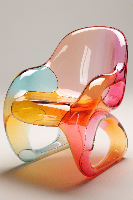 A lovely chair design, Transparent, Acrylic material, Pink, Yellow, Light green, Studio lighting, C4D, blender, 3d ART, 32k, White background --ar 2:3 --s 250 --style raw --v 6.0