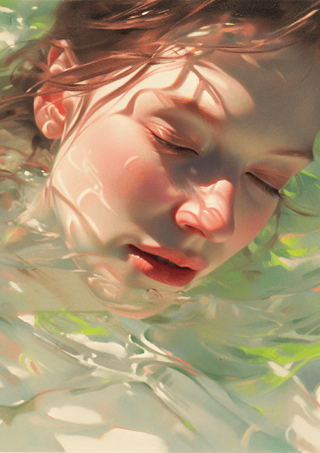 Imagine a young woman of extraordinary beauty, her ethereal glow captured by the masterful style of Maria Lassnig. The close-up view reveals her flawless skin, eyes sparkling with inner light, against a backdrop of cascading waterfalls inspired by National Geographic's breathtaking nature photography. Rendered in UHD for utmost detail. --ar 5:7 --s 400 --niji 5