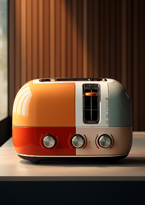 A reimagined toaster, inspired by Elle Decor, displays bold color blocks, creative styling, and lavish texture-rich surfaces. Its design, reminiscent of the fluid forms of the Han dynasty, comes to life through a 3D render that showcases the toaster's sculptural precision. --ar 5:7 --s 250 --style raw --v 6.0