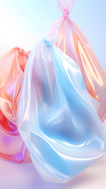 Flexible LDPE plastics grocery bags, more minimal looking, minimal background, visually stunning and captivating, octane render --ar 9:16 --s 250 --style raw --v 6.0
