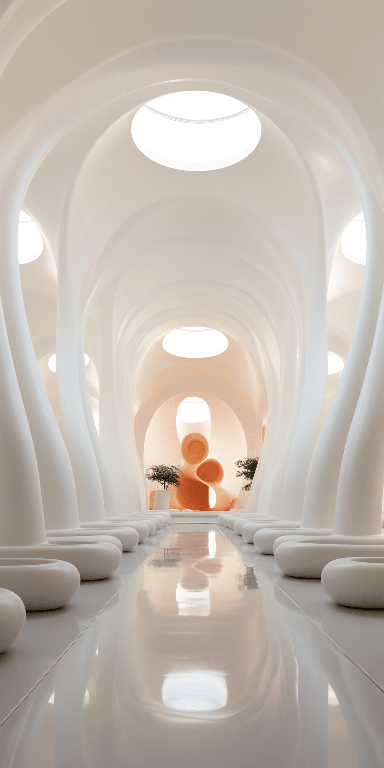 The interior of a museum that has a wall of white tubing, in the style of religious building, jun kaneko, neutral color palette, elba damast, eco - friendly craftsmanship, qian xuan, constructivist inspiration --ar 1:2 --s 250 --style raw --v 6.0