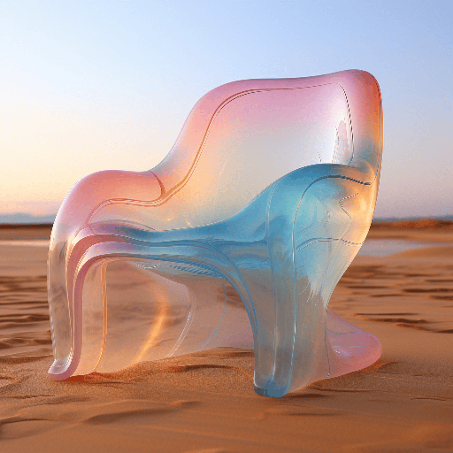 a chair that is made out of plastic, in the style of pastel dreamscapes, ethereal transparency, comfycore, clever use of negative space, dusty piles, flowing fabrics, frank quitely --s 250 --style raw --v 6.0