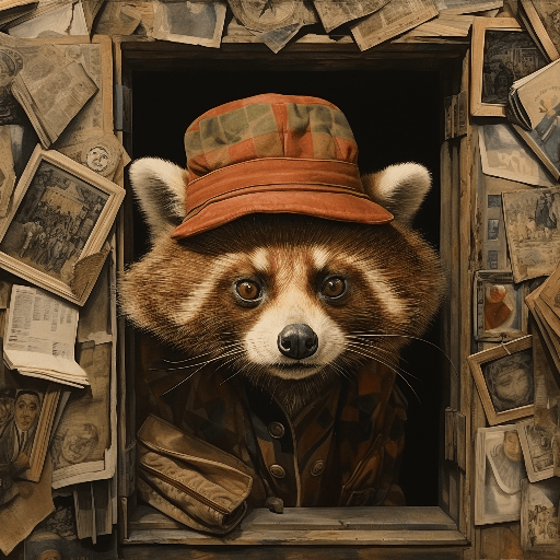 Red panda punks and henry ginty, the olympics and a hat, , distorted and grotesque, arched doorways, self - portrait, expressive forms, close - up intensity by David Wiesner --s 250 --style raw --v 6.0