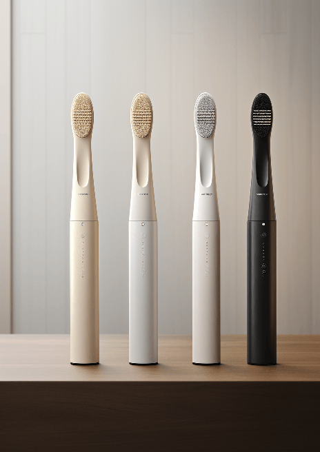 A sleek and sophisticated electric toothbrush influenced by the purity of Scandinavian design. Render it in a minimalistic, glossy white form, with a touch of wooden texture for warmth. Style: Scandinavian Modern. Aesthetically, use a cool neutral palette, accentuated with rich, wooden textures. Highlight the ultra-detailed design in 16K resolution. --ar 5:7 --s 250 --style raw --v 6.0
