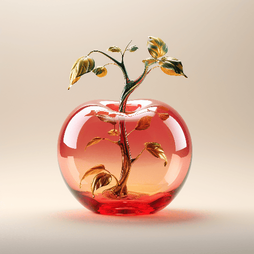 A glass apple that grew from that plant, realistic --s 250 --style raw --v 6.0