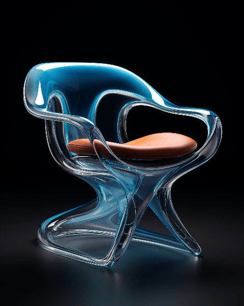 Imagine a chair with a unique, futuristic design. The chair's stunning image is captured in ultra-detailed UHD, showcasing the creativity and innovation of modern furniture design --ar 4:5 --s 250 --style raw --v 6.0