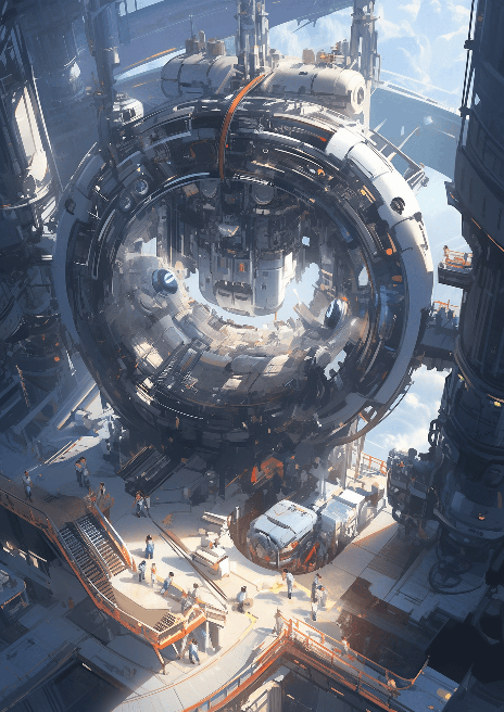 In the flat design style, a space station orbits a distant planet. The station is a bustling hub of activity, with astronauts and robots working together. Perspective: Wide Angle. Composition: Rule of Thirds. Environment: Outer space with a distant planet. Artist: Andreas Franke --ar 5:7 --s 400 --niji 5