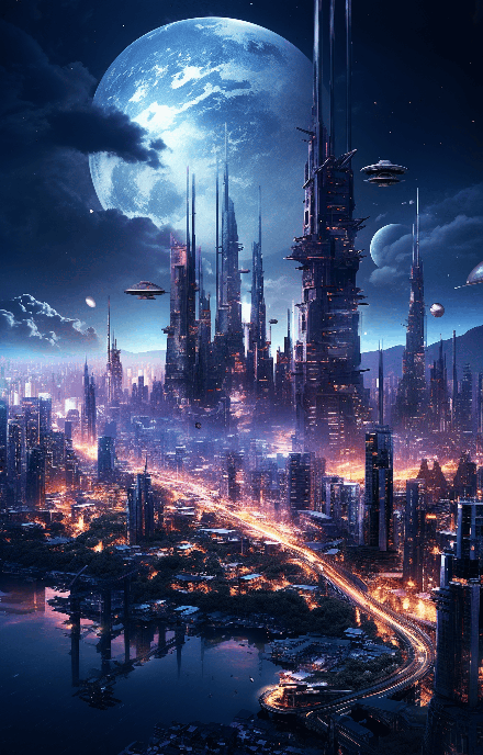 A futuristic cityscape at night, bathed in neon lights and towering skyscrapers, with flying cars zooming through the sky. Aerial view capturing the bustling metropolis, inspired by science fiction films like Blade Runner, by Liam Wong --ar 9:14 --s 250 --style raw --v 6.0