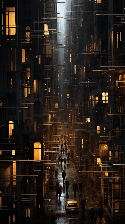A futuristic cityscape reminiscent of Christopher Nolan's "Inception", with gravity-defying architecture and streets folding upon themselves. Captured in a wide view to highlight the surreal, intricate design of the city. Hyper-detailed and cinematic, by Andreas Gursky --ar 9:16 --s 250 --style raw --v 6.0