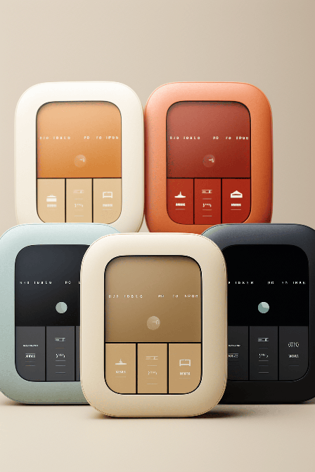 A futuristic e-reader design, boasting an aesthetic that combines the simplicity of Muji with the avant-garde approach of Memphis Design. Rendered in 3D, its main element is a minimalist, all-screen interface. Complementary elements include a colorful geometric pattern on the back, captured in high resolution under studio lighting --ar 2:3 --s 250 --style raw --v 6.0