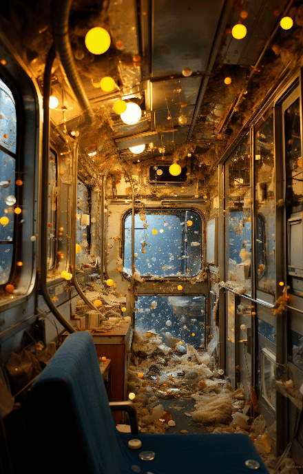 Visualize an artistic creation by Sarah Sze. Inside a vintage train carriage, the floor gives way to a vivid, ultra-detailed, miniature cityscape. Skyscrapers and tiny vehicles spread out below, captured from a bird's-eye view to create a dizzying sense of scale. --ar 9:14 --s 250 --style raw --v 6.0