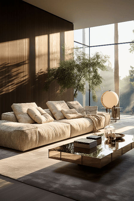 Envision a luxuriously textured sofa, embodying light luxury and modern minimalism. This piece is a beautiful blend of comfort and style, rendered in Ultra HD, 16K. It's the perfect piece for a high-end interior, and the natural light enhances the fluffy cushions and sleek, streamlined frame, capturing the sofa's texture and form --ar 2:3 --s 250 --style raw --v 6.0