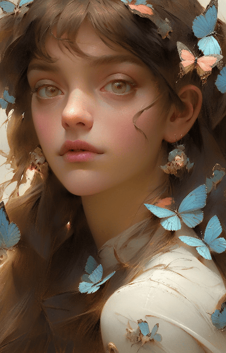 In a garden of eternal spring, a fairy-like girl, her visage a beautiful canvas of youthful innocence, interacts with luminescent butterflies. Portray her from an extreme close-up perspective to showcase the fine details of her enchanting features, with a composition inspired by the techniques of Alec Soth. The environment is a dreamy National Geographic-esque garden at twilight, teeming with bioluminescent flora. Render in an anime style with an 8K UHD finish." --ar 9:14 --style expressive --s 400 --niji 5