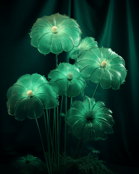 A futuristic ,Abstract light sea green Huge amzon flowers that are lamps, rebar advertisement by kinfolk: hyper realistic, photorealistic, Studio Lighting, reflections, dynamic pose, Cinematic, Color Grading, Photography, Shot on 50mm lens, Ultra - Wide Angle, Depth of Field, hyper - detailed, beautifully color - coded, insane details, intricate details, beautifully color graded, Unreal Engine, Cinematic, Color Grading, Editorial Photography, Photography, Photoshoot, Shot on 70mm lens, Depth of Field, DOF, Tilt Blur, Shutter Speed 1/ 1000, F/ 22, White Balance, 32k, Super - Resolution, Megapixel, ProPhoto RGB, VR, Lonely, Good, Massive, Half rear Lighting, Backlight, Natural Lighting, Incandescent, Optical Fiber, Moody Lighting, Cinematic Lighting, Studio Lighting, Soft Lighting, Volumetric, Contre - Jour, Beautiful Lighting, Accent Lighting, Global Illumination, Screen Space Global Illumination, Ray Tracing Global Illumination, Optics, Scattering, Glowing, Shadows, Rough, Shimmering, Ray Tracing Reflections, Lumen Reflections, Screen Space Reflections, Diffraction Grading, Chromatic Aberration, GB Displacement, Scan Lines, Ray Traced, Ray Tracing Ambient Occlusion, Anti - Aliasing, FKAA, TXAA, RTX, SSAO, Shaders, OpenGL - Shaders, GLSL - Shaders, Post Processing, Post - Production, Cel Shading, Tone Mapping, CGI, VFX, SFX, insanely detailed and intricate, hyper maximalist, elegant, hyper realistic, super detailed, dynamic pose, photography, 32k --ar 4:5 --style raw --v 6.0