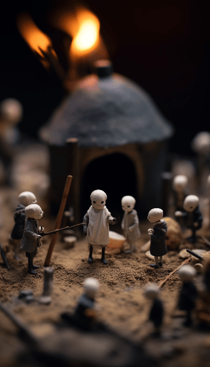 a model of small people performing an iconic scene from from a hellish nightmare in the style of Nicola samori and Emil melmoth, uhm image, landscapist, soft-focus, charming illustrations, tinycore --ar 4:7 --style raw --v 6.0