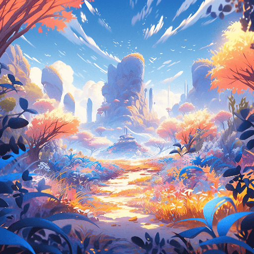 An exotic, alien landscape, vibrant and surreal, filled with imaginative flora and fauna. Render this scene in a profile perspective, full of intricate details and bold colors, in the style of Max Ernst, UHD, fine details --ar 1:1 --s 400 --niji 5