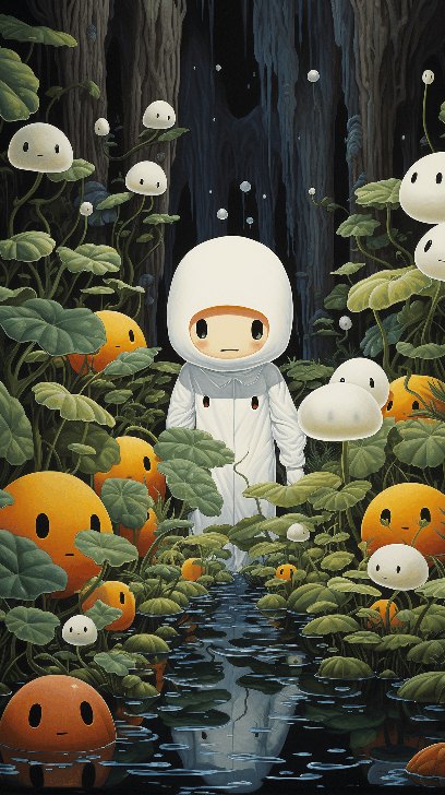 Art by Chiho Aoshima and Hasui Kawase, pop surrealism, lowbrow art, highly detailed, single image --ar 9:16 --s 250 --style raw --v 6.0