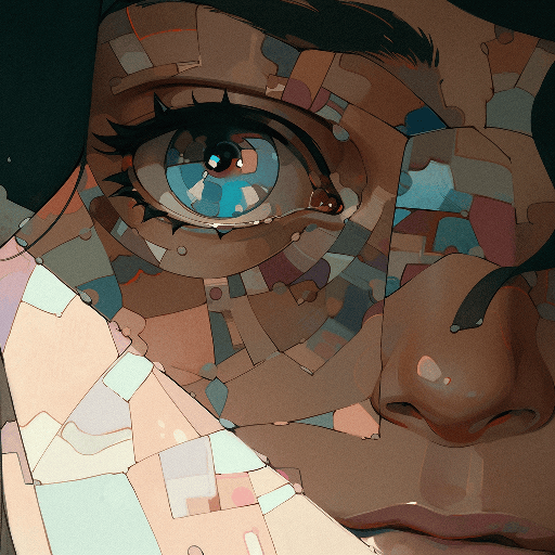 A sphinx, resting in a city square, puzzles passersby with riddles. In the style of Alex Webb, extreme close-up captures her enigmatic smile, octane rendering, ultra HD --ar 1:1 --style expressive --s 400 --niji 5