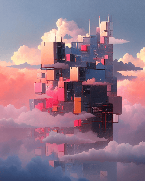 A fantastical vision of a cityscape floating in the clouds, the skyline woven with towers of glass and metal, captured in an extreme closeup by Bertil Nilsson. The structures reflect the colors of the sunset, creating an otherworldly panorama --ar 4:5 --s 180 --v 6.0