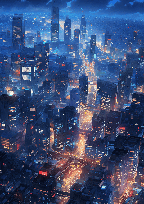 As the sun sets, the city comes alive with lights. In the style of Andreas Gursky, this wide-angle shot from above captures the city's transformation into a neon wonderland, streets becoming veins of pulsating light --ar 5:7 --s 400 --niji 5
