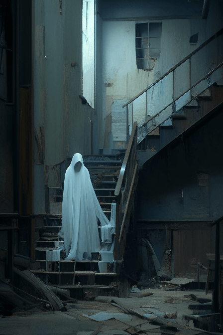 In the style of Alex Webb, we meet a character from a nightmare. A spectral figure, face obscured by a tattered hood, wanders through an abandoned city. The perspective is a profile, adding to the sense of mystery. 8K, rich in fine details --ar 2:3 --s 400 --niji 5