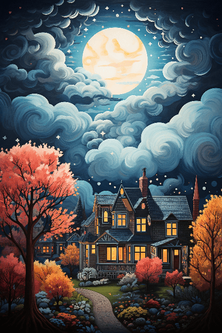 A moonlit sky, in the style of "katie daisy" --ar 2:3 --s 250 --v 6.0