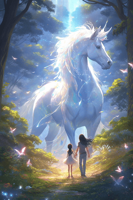 Imagine an enchanting forest scene reminiscent of scenes captured in National Geographic, painted in the Japanese retro style. In the heart of the forest, a beautiful, glowing unicorn stands, its radiant mane shimmering with a myriad of colors. The fine details in ultra-high definition, 8K resolution, and the perspective is wide angle to capture the entire scene in its enchanting glory --ar 2:3 --s 180 --v 6.0