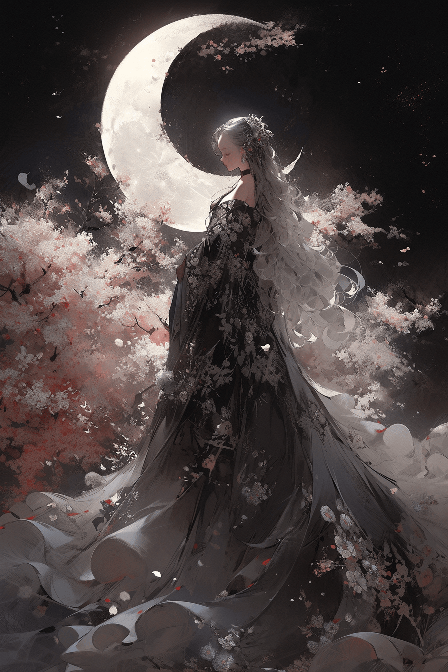 Imagine an ethereal scene, a woman draped in Alexander McQueen, standing in a blooming sakura garden under the full moon. Her beauty, captured in a profile shot, speaks of delicate strength and a hint of mystery. Rendered in a Japanese retro style, the scene takes on a fantasy-like quality. Light and shadow play across her perfect face, the cherry blossoms, and the garden, adding depth and drama to the UHD scene. --ar 2:3 --s 180 --v 6.0